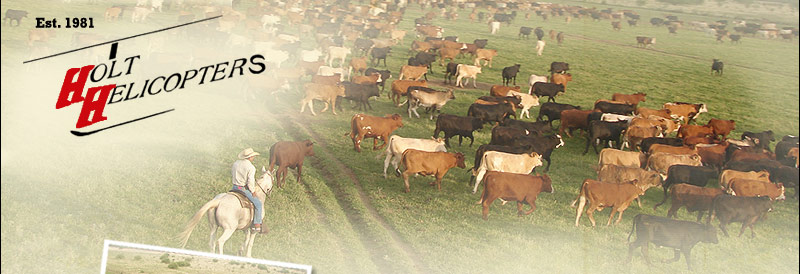 Holt Helicopters has more than 25 years experience “in the saddle” gathering cattle. In the pilots seat Holt has flown more than 54,000 accumulative hours. His experience means more reliable and cost effective roundups. It means the highest percentage of remnant cattle. That means you get what you want: more pounds across the scales at the lowest cost. Holt Helicopters wants your return business.